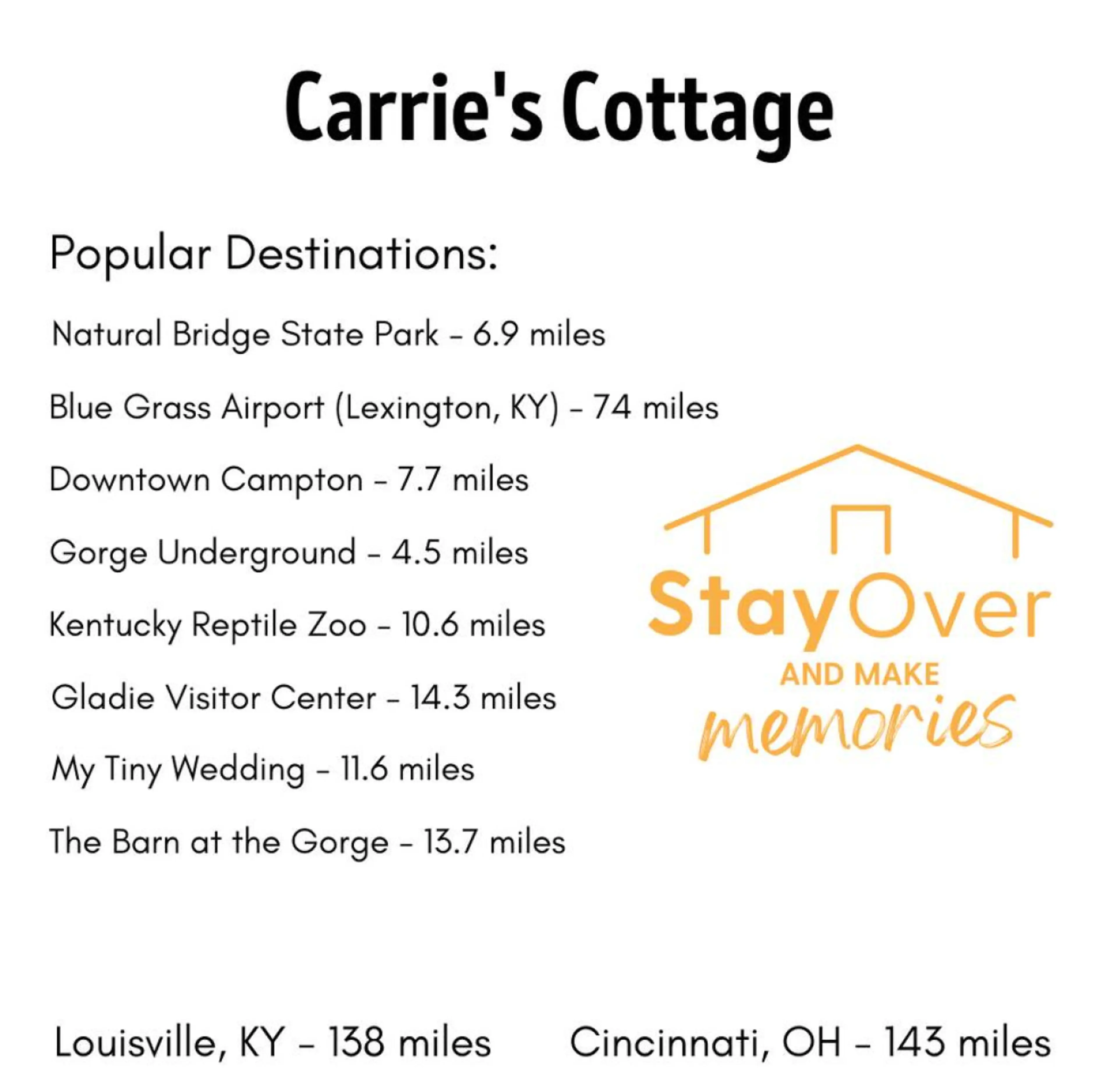 Welcome to your next adventure headquarters! Carrie's Cottage is nestled in the heart of Red River Gorge, KY. This wonderful, country cottage will have you feeling right at home. Gift yourself, and your party, true seclusion that not many people in Red River Gorge get to experience. Find yourself re...